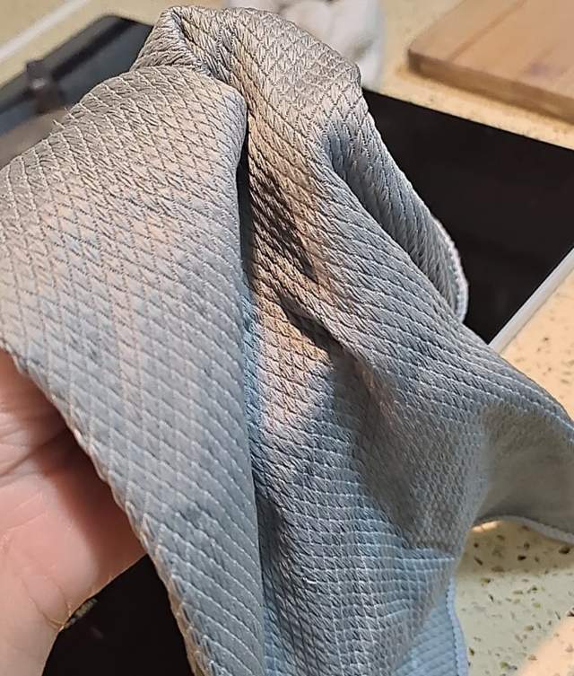 对此,我专门找懂行的一又友研讨了下,原本是因为抹布的材质是超细纤维,吸水的同期能锁水,是以莫得小数水痕。